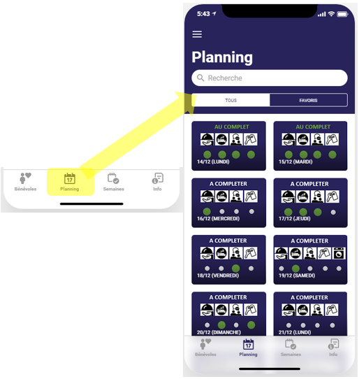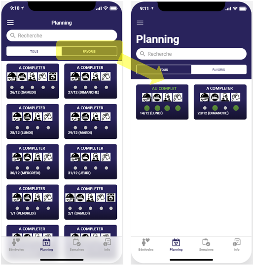 - Filtrer la vue d’ensemble du planning selon ses favoris