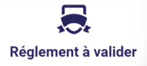 Si vous ne validez pas le règlement et changez de page, vous pourrez revenir au règlement et continuer à faire défiler les pages. Vous pourrez aussi directement retourner à la page de validation du règlement en utilisant le menu Validation du Règlement.